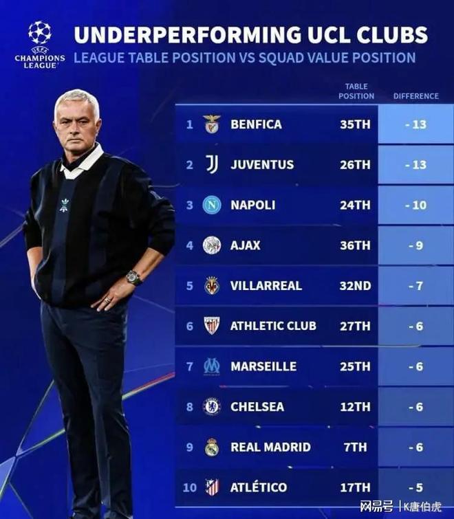 德转统计的本赛季欧冠表现最差的十支球队